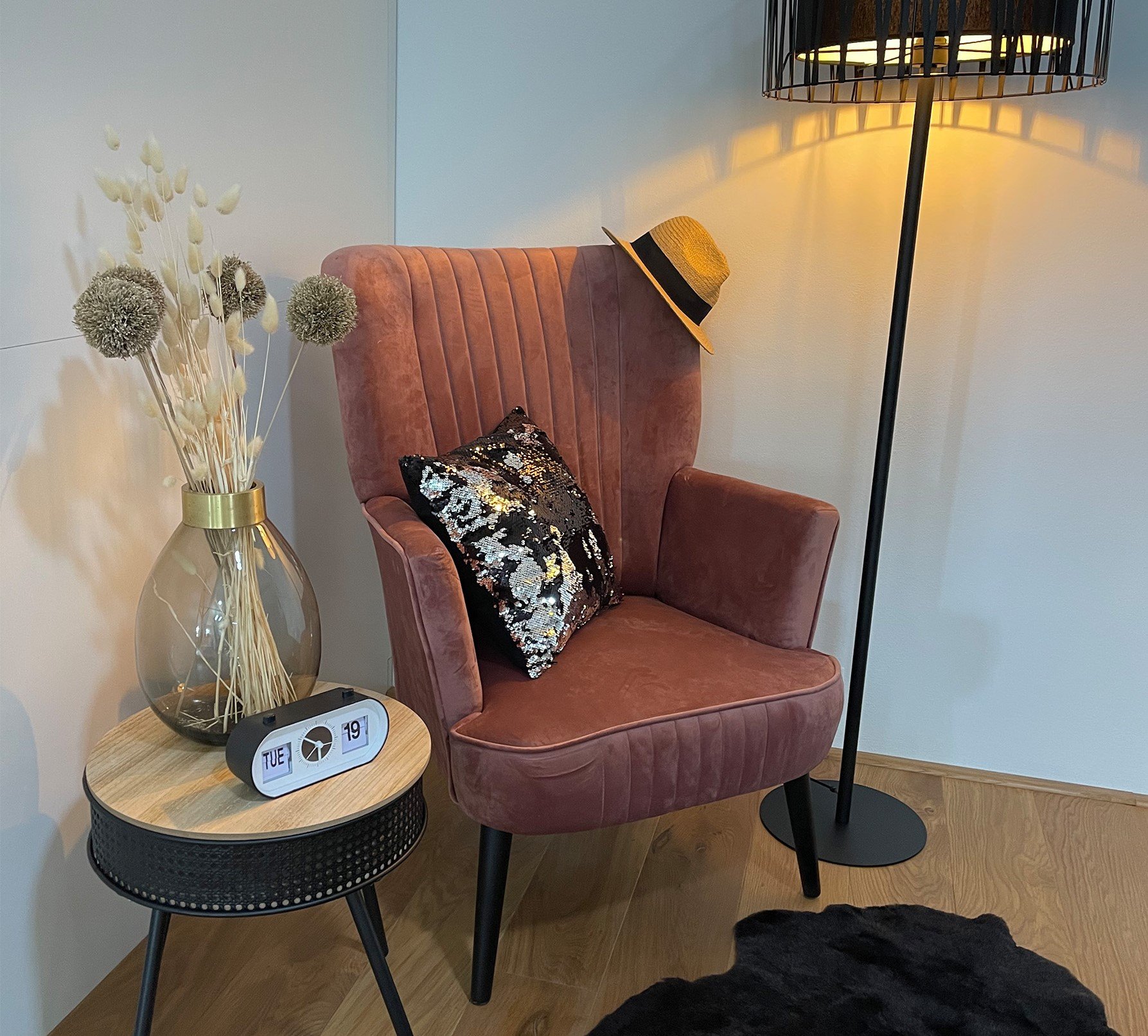 Originální křeslo, originální lampa a originální stolek Trofea, to je koutek Dalgado.