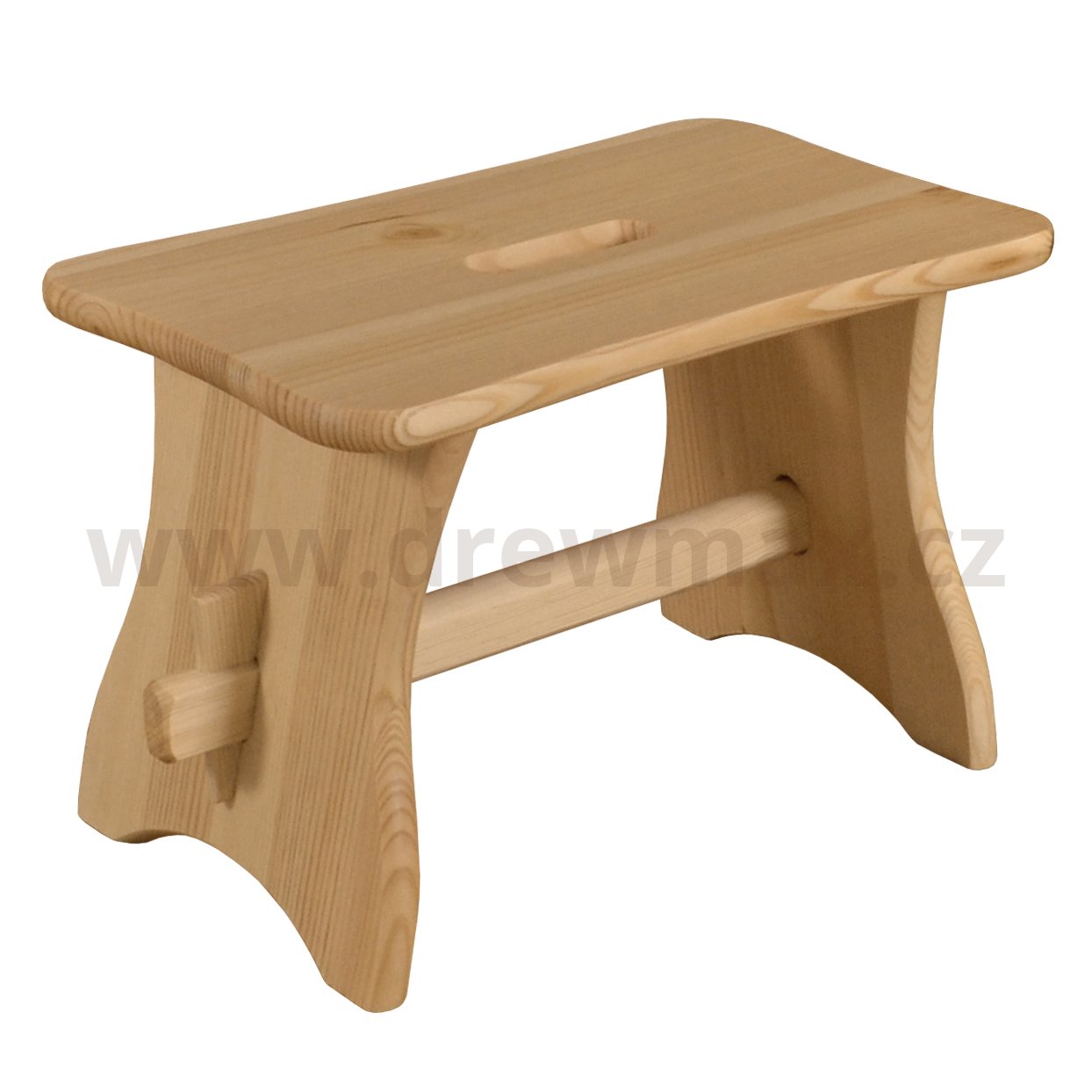 Nízká stolička na čtyřech nožkách je vyrobená z masivního borovicového dřeva. Stolička má několik využití a je tak velmi praktickým prvkem v domácnosti.