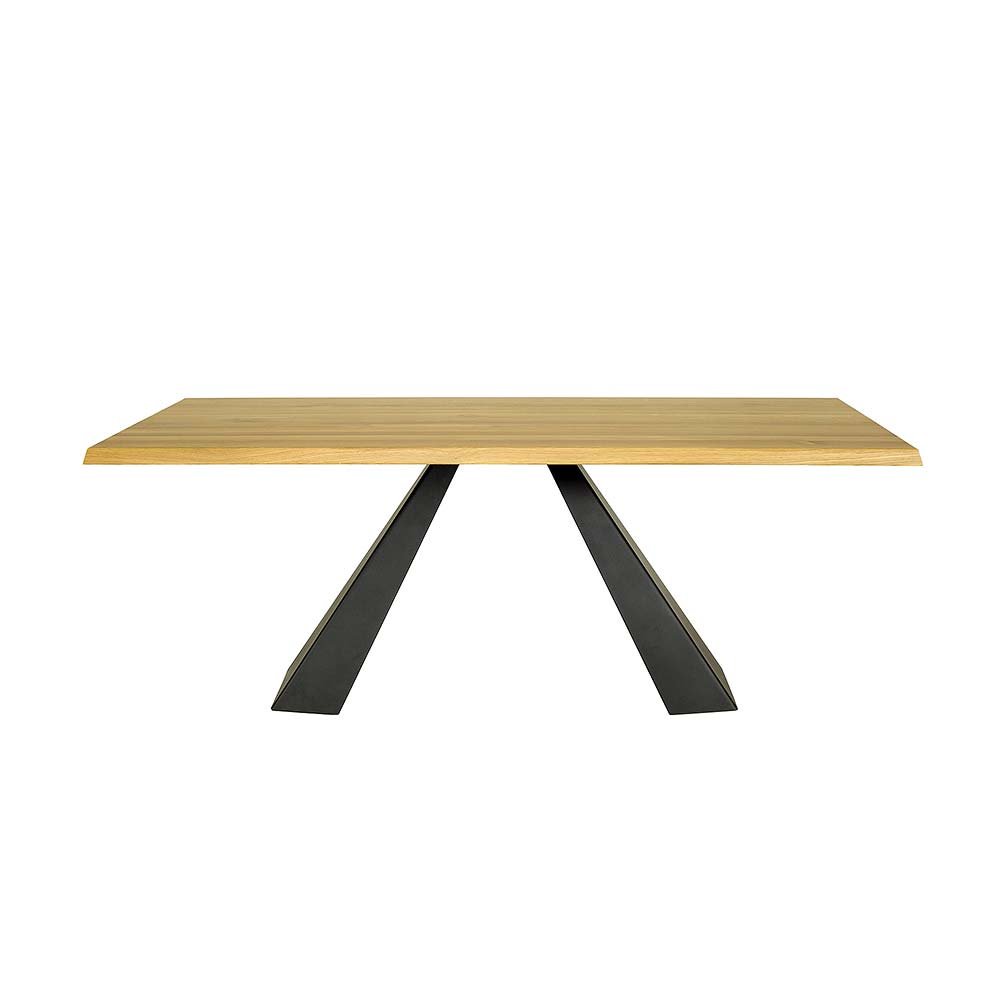 Jídelní stůl vyrobený z masivního přírodního dubového dřeva v kombinaci s černým kovem.