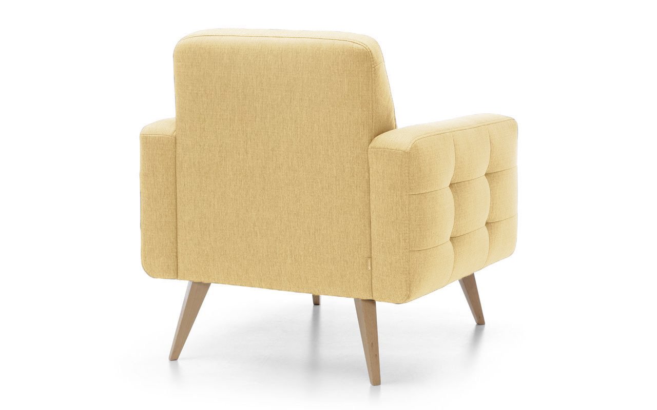 Látkové křeslo v oblíbeném skandinávském stylu a komfortním tvaru poskytne svému uživateli příjemné a pohodlné sezení. Měkce vypolstrovaný opěrák zad stejně jako područky jsou doplněny atraktivním proševem a dekorativními knoflíky. Křeslo může být umístěno samostatně a nebo spolu s rozkládací látkovou sedačkou Nappa.