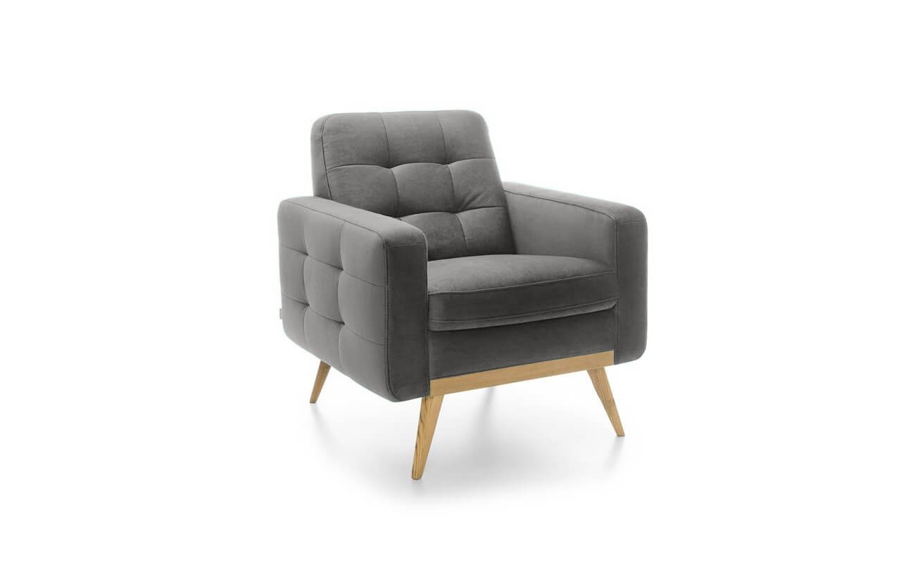 Stylové čalouněné křeslo na dřevěných nožkách najde své místo v každé domácnosti - prakticky poslouží v prostoru obývacího pokoje, ložnice nebo také v předsíni. Přijemný opěrák stejně jako područky jsou zpestřeny atraktivním proševem měkkého vypolstrování pro váš každodenní komfort. Může být umístěno samostatně a nebo spolu s rozkládací koženou sedačkou Nova.