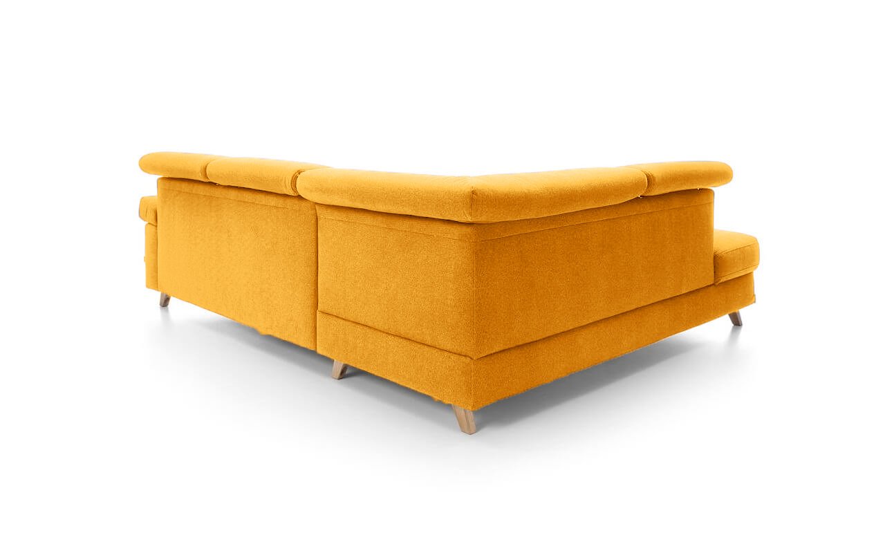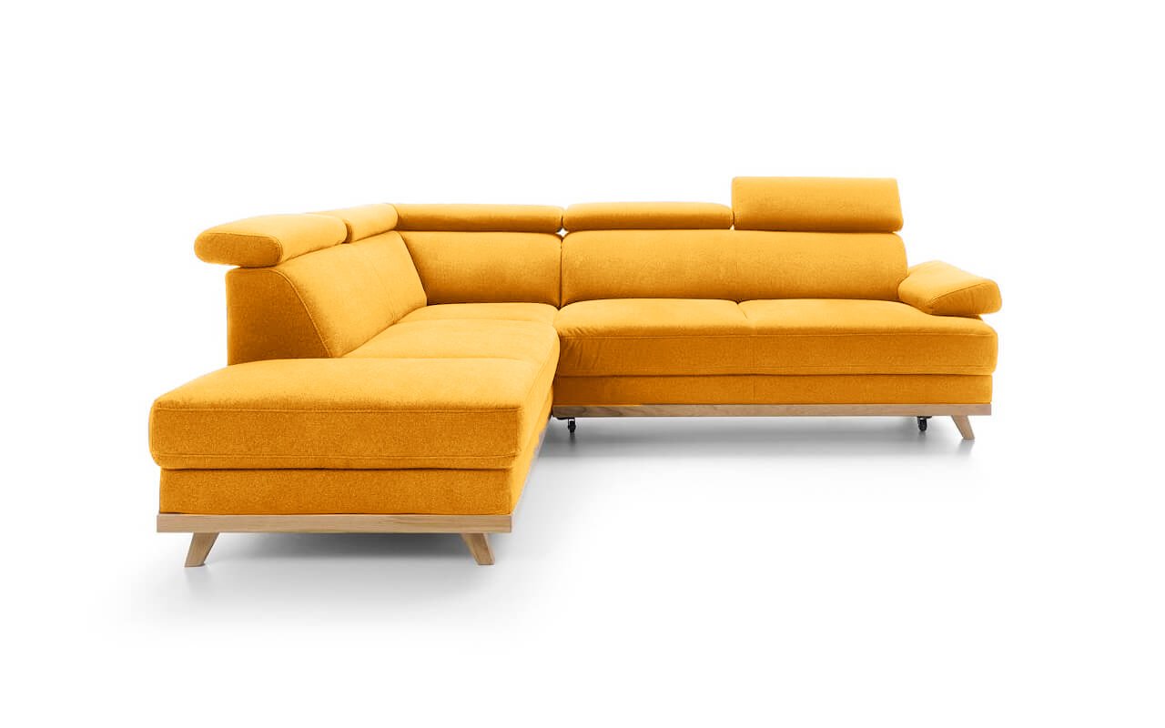 Elegantní rohová sedací souprava s komfortně měkkým sezením a polohovatelnými opěrkami hlavy nabízí skvělé pohodlí i praktičnost. Dřevěné nožičky dodáváme v různých odstínech. Vlastní výběr jejich moření uveďte do poznámky na konci objednávky.