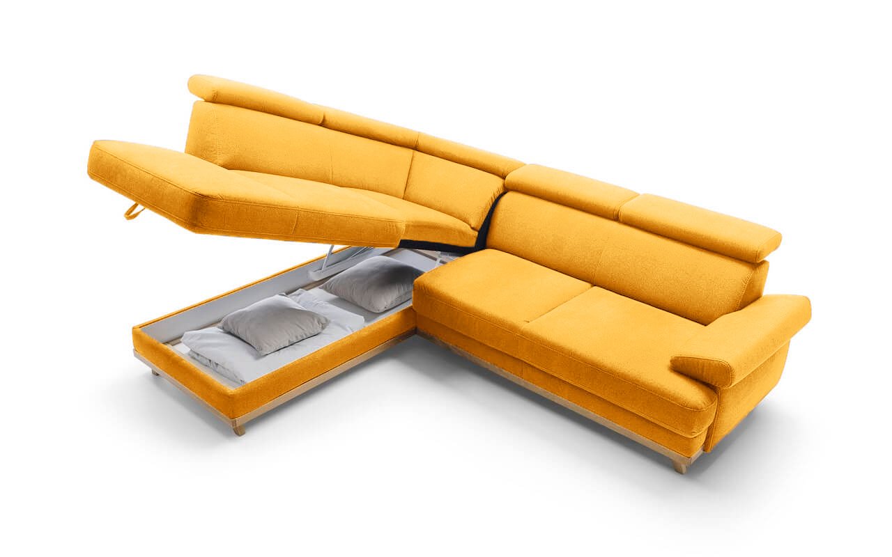 Bezesporu oceníte rozkládací systém, který se nachází přímo pod sedákem - snadným pohybem jej rozložíte a využijete jako prostorné lůžko. Stojíte-li právě naproti pohovce, potom se po vaší levé ruce nachází relaxační zóna, která v sobě navíc ukrývá úložný prostor o velikosti 188 cm x 79 cm x 15 cm).