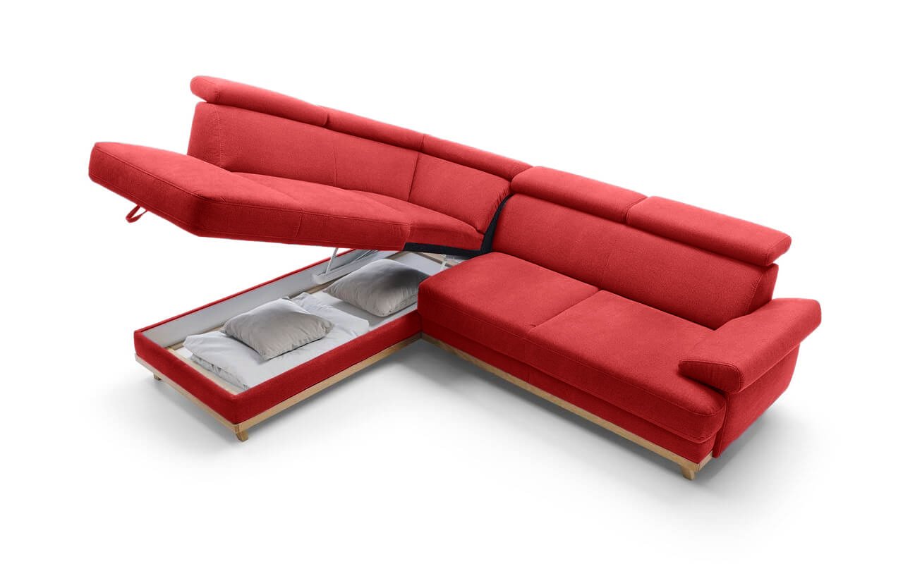 Bezesporu oceníte rozkládací systém, který se nachází přímo pod sedákem - snadným pohybem jej rozložíte a využijete jako prostorné lůžko. Stojíte-li právě naproti pohovce, potom se po vaší pravé ruce nachází relaxační zóna, která v sobě navíc ukrývá úložný prostor o velikosti 188 cm x 79 cm x 15 cm).