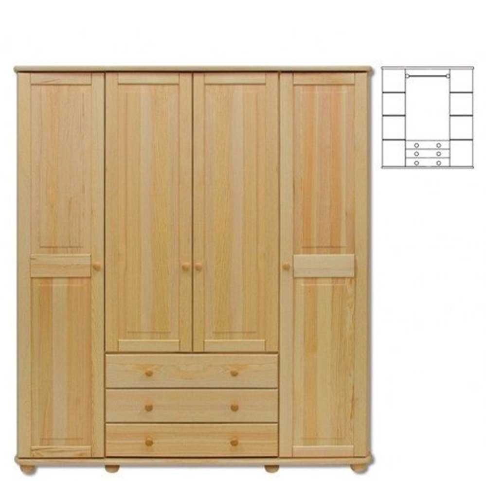 Dvéřová dřevěná skříň se šuplíky z masivní přírodní borovice
