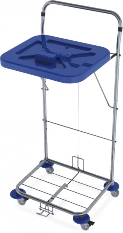 Nožní ovládání víka. Chromovaná ocelová konstrukce. Otvírací plastové víko v barvách podle vzorníku.