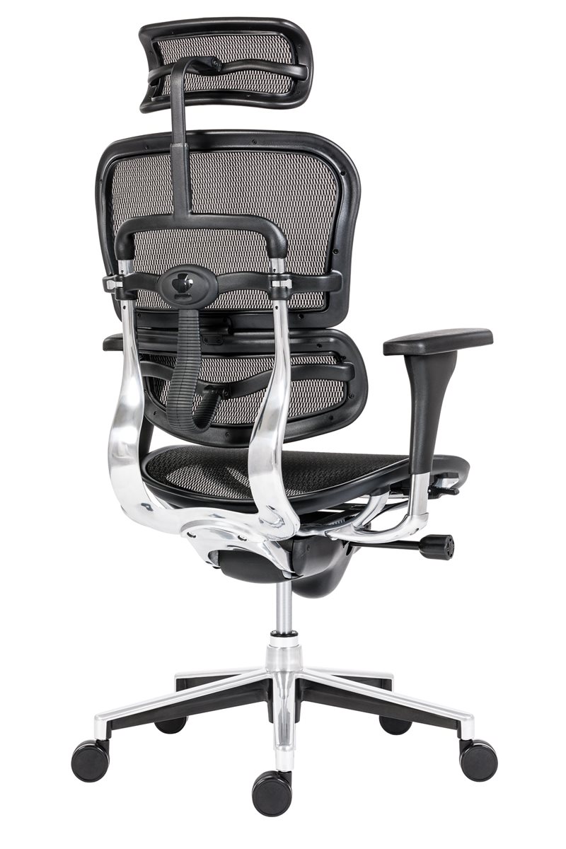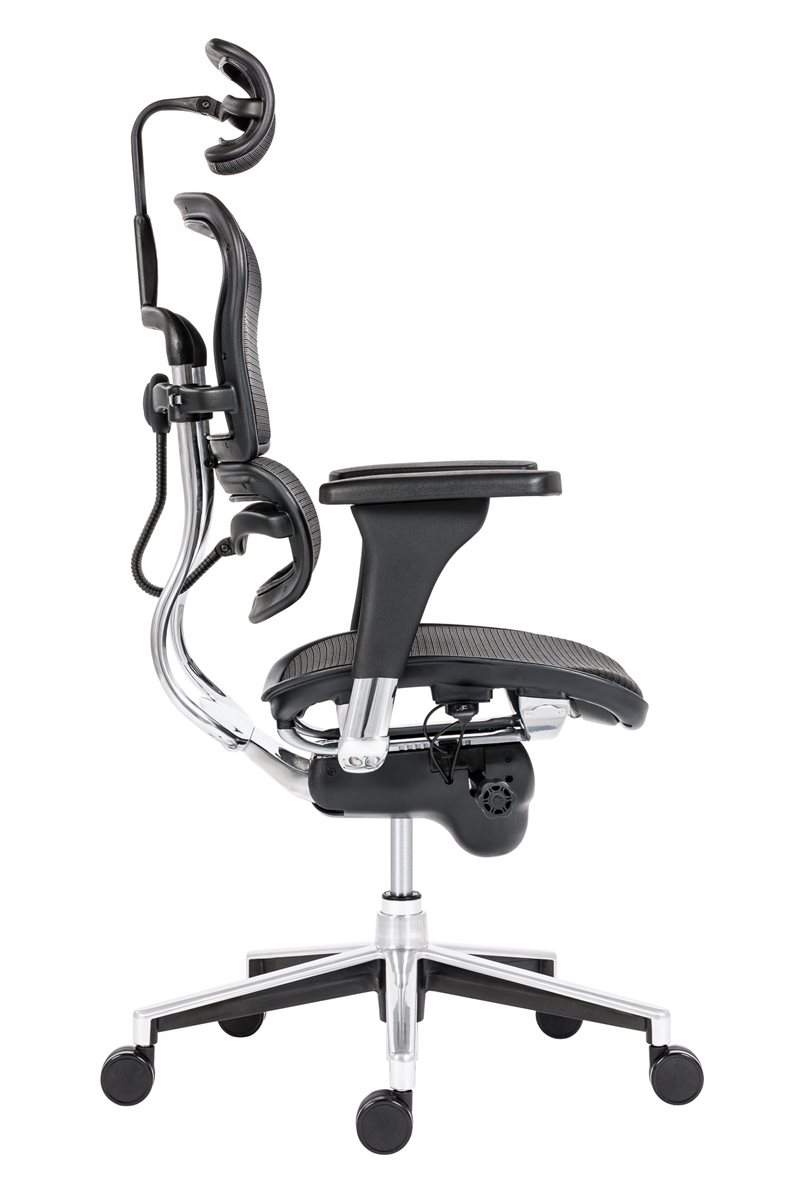 • Exkluzivní kancelářská židle s prodyšným opěrákem a opěrkou hlavy, čalouněným sedákem, synchronní mechanismus s nastavením síly protiváhy - ovládání bovdenem, několikanásobná aretace, nastavení hloubky sedáku, výškové nastavení opěráku, nastavení úhlu a výšky područek a opěrky hlavy, bederní pružná opěrka s permanentním přítlakem, aluminiová báze, kolečka O 65 mm - pro všechny typy podlah, barva černá, nosnost 150 kg, záruka 36 měsíců.