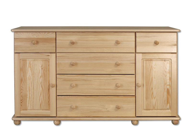 Komoda je vyrobena z masivní přírodní borovice a je povrchově upravená lakováním. Zásuvky jsou dřevěné na kolečkových výsuvech s 2/3 otevřením. U dveří použity kvalitní kovové panty s úhlem otevření 110°.