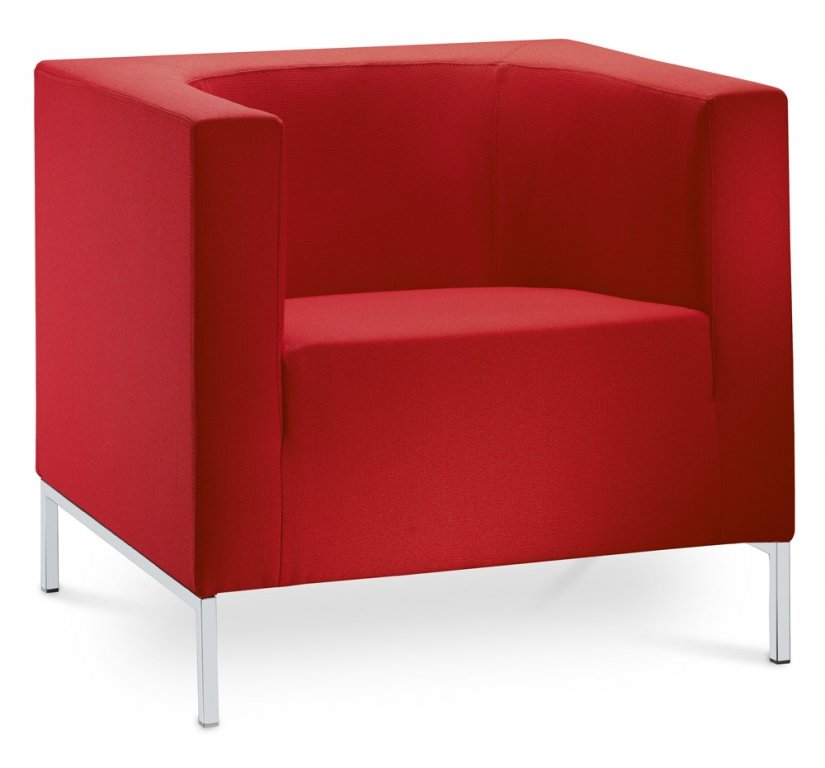 • Křeslo KUBIK. Celočalouněné křeslo, vysokozátěžové.Korpus vyplněný studenou pěnou s ocelovou výztuhou. Podnož v povrchové úpravě chrom.