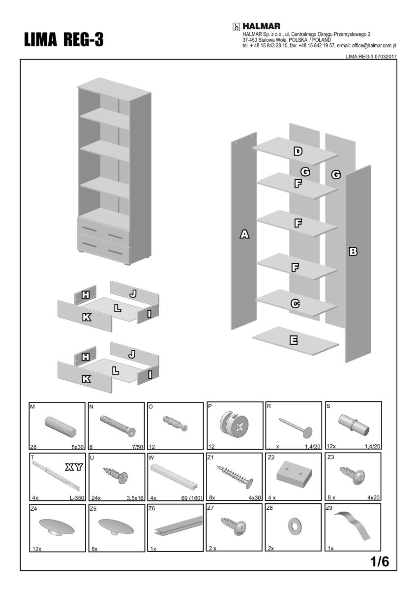 | ProductName | HALMAR - Policová skříň, regál Lima REG3 77x40x200cm - bílý |