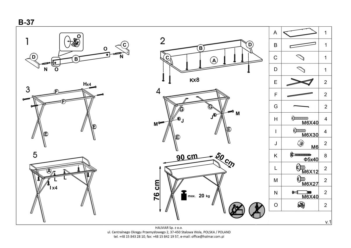 | ProductName | HALMAR Psací stůl B-37 120x50x76cm - černý/ořech |