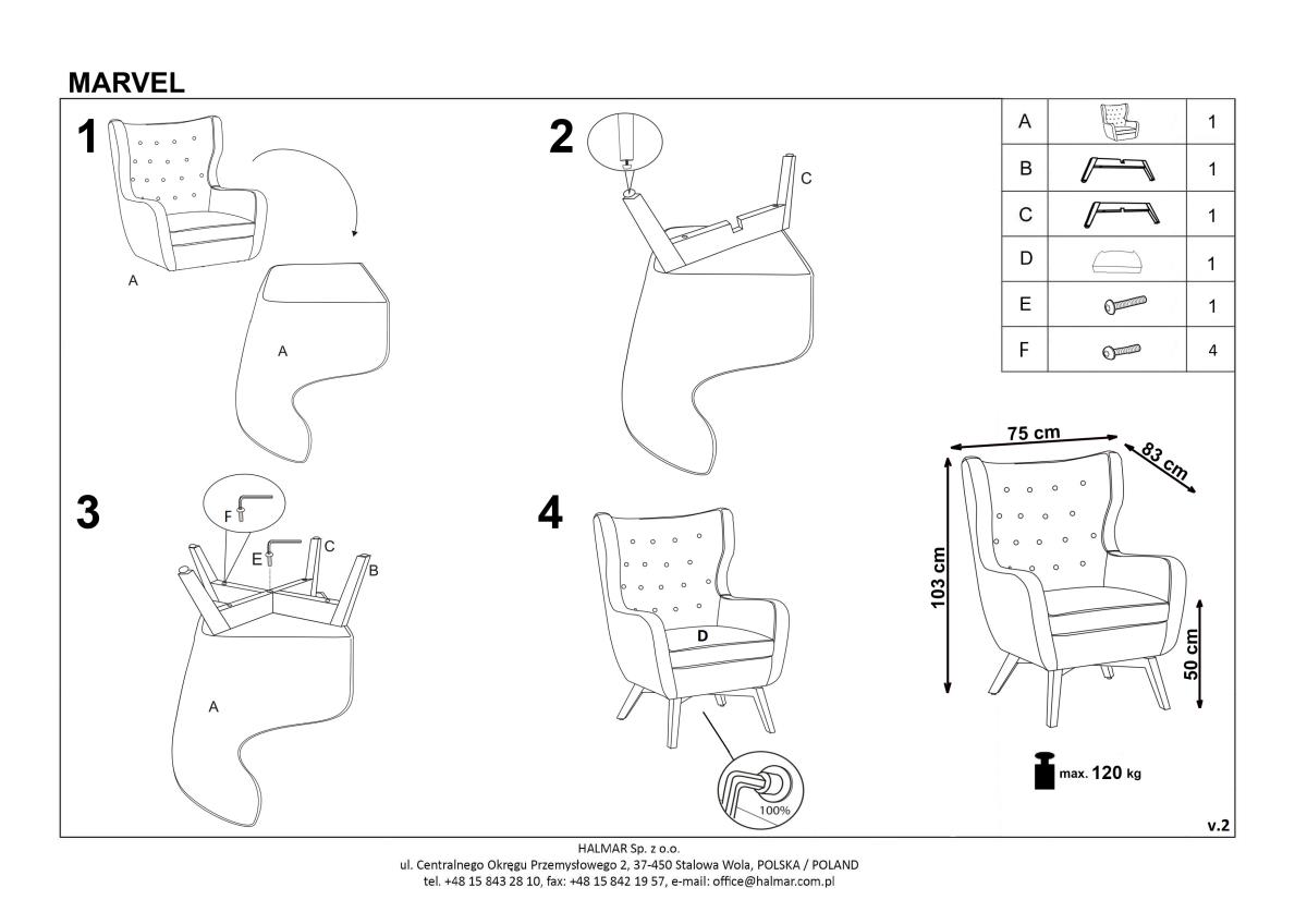 | ProductName | HALMAR Relaxační křeslo Marvel 75x83x103cm - Žluté |