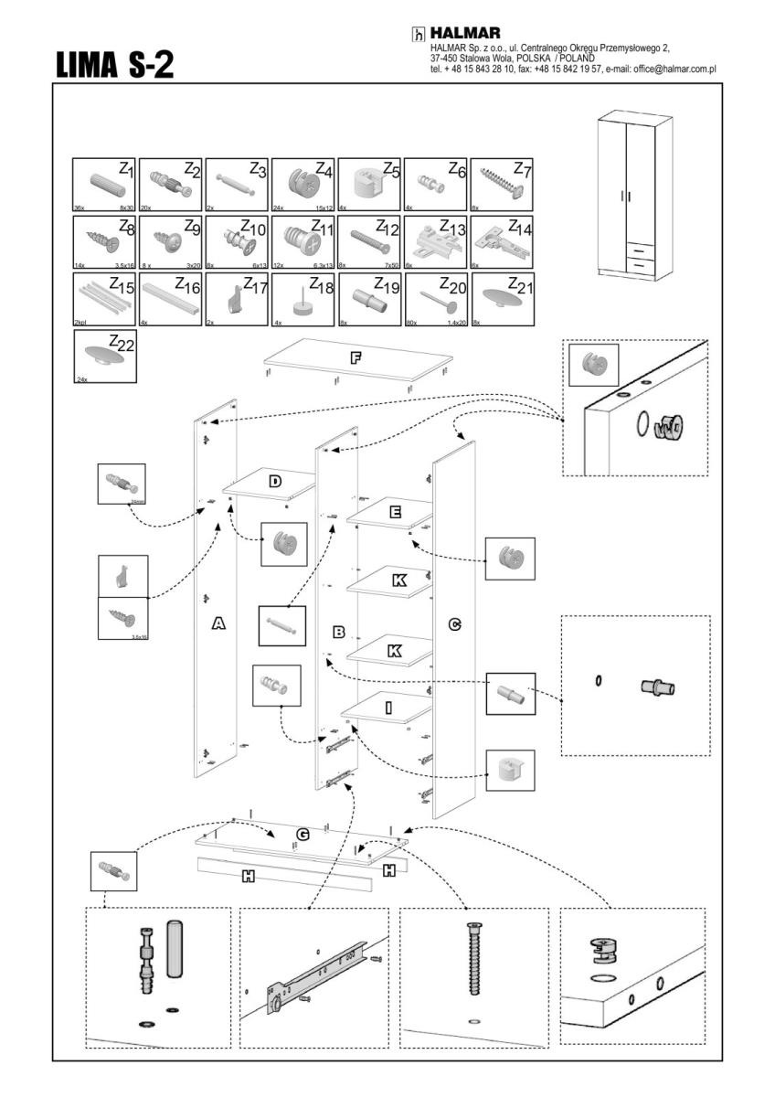 | ProductName | HALMAR - LIMA S-2 Šatní skříň 80x52x205cm - bílá/dub sonoma |