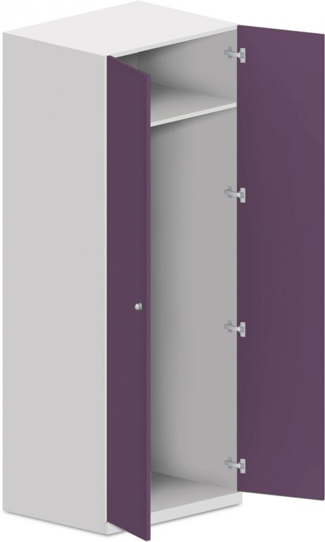 • So šatníkovou tyčou, horná odkladacia polica. Šatníkové skrine s tyčou na zavesenie ramienok vyrobené vrátane chrbta skrine z laminotrieskovej dosky s hrúbkou 18 mm. Na dverných závesoch tlmenie pre hladké a tiché dovieranie dverí. Skrine vybavené nastaviteľnými klzákmi na vyrovnanie podlahovej nerovnosti. Expedované v zmontovanom stave.