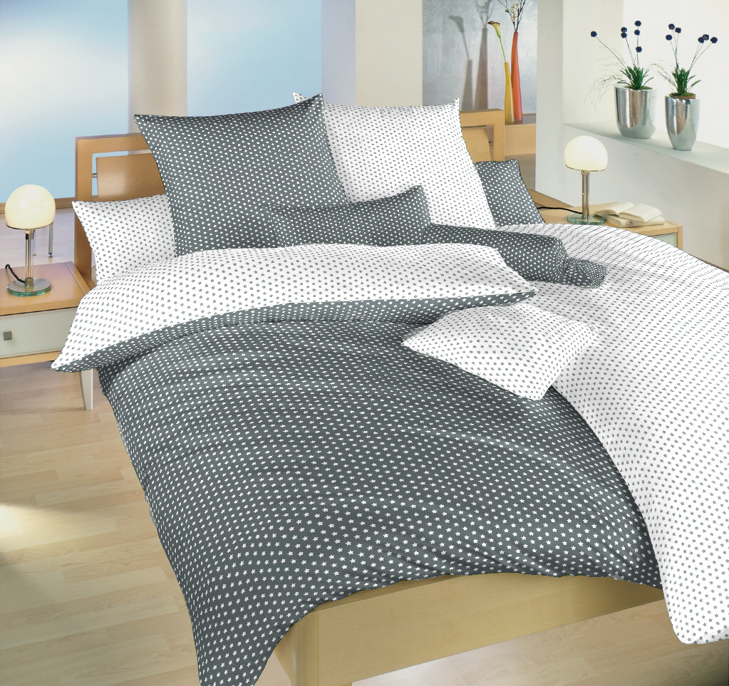 • Komfortná posteľná bielizeň z kvalitnej jemnej bavlny s motívom drobných bielych hviezdičiek na šedom podklade, druhá strana šedej hviezdičky na bielom podklade. Obliečky je vhodné kombinovať s bielou alebo tmavo šedou plachtou. Rozmer obliečky je 140x200, 70x90 cm.