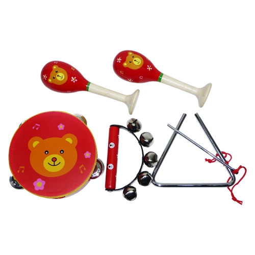 • Detská drevená hudobná sada s motívom medvedíka obsahuje dve rumba gule, tamburínu, rolničky a triangel. Podporuje vývoj detí, rozvíja detskú kreativitu a záujem o hudbu. Na výrobu je použitý prvotriedny materiál. Vhodné pre deti od 3 do 12 rokov.