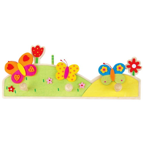 Detský drevený vešiak s motívom lúky. Na výrobu je použitý prvotriedny materiál a na povrchovú úpravu ekologický lak. Tento výrobok sa vyznačuje starostlivým spracovaním a dlhou životnosťou.