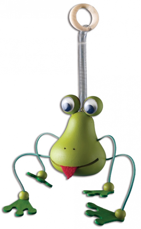 Krásna figúrka zavesená na pružinke je krásnym darčekom už pre veľmi malé deti. Vďaka krúžku na konci pružinky sa dá hračka ľahko zavesiť. Deti túto hračku majú veľmi rady a slúžia ako krásna ozdoba každej izby. Figúrka je vyrobená z masívnej prírodnej borovice a povrchy drevených figúrok sú opatrené kvalitnými, ekologickými, certifikovanými, vodou riediteľnými farbami a lakmi.