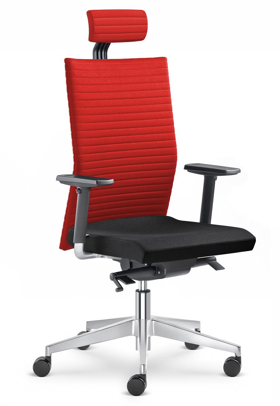 Stolička ELEMENT 435-SYS-F40-N6 Výškovo nastaviteľná a naklopiteľná opierka hlavy, vysoké operadlo. Synchrónna mechanika SYS s bočným nastavením tuhosti operadla. Plynový piest, leštený hliníkový kríž, kolieska 60 mm. Výškovo nastaviteľné podrúčky BR207.