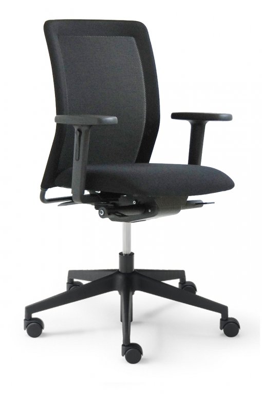 Kancelárska stolička, ktorá predstavuje ďalší vývoj bestselleru od spoločnosti Wiesner-Hager a prináša rozhodujúce plusové body – optimalizovanú synchrónnu mechaniku, ešte vyšší obslužný komfort, vynikajúce ergonomické vlastnosti, nekompromisnú kvalitu a ekologický dizajn produktu. To všetko v takom pomere ceny a výkonu, aký v tejto kategórii neponúka žiadna iná otočná stolička. Sedák a operadlo zaručujú vďaka viacdimenzionálnemu nastaveniu ten najvyšší komfort sedenia. Bázu stoličky tvorí otočný čierny plastový kríž. Dvojité kolieska s tvrdým povrchom, brzdené v závislosti od záťaže. Ovládacie prvky a podrúčky z čierneho plastu. Podrúčky sú výškovo nastaviteľné, s mäkkými lakťovej opierkyými opierkami. Chrbtová opierka má čierny sieťový poťah (Trevira CS, 100% polyester), sedák je čalúnený. Cena vrátane podrúčiek. Báza s kolieskami: O 69,5 cm Výška podrúčiek: 19-29 cm Stolička sa dodáva v zmontovanej podobe. Vyberať môžete z rôznych farebných odtieňov. Funkcia: Synchrónna mechanika – integrované ovládanie hĺbky sedadla, ktoré poskytuje komfortné postranné nastavenie sily pružiny v širokej škále pre presné nastavenie podľa hmotnosti tela (od 40 do 120 kg). Nastavenie výšky sedadla pomocou plynového piestu podľa DIN 4550 s tlmičom. Výškovo nastaviteľná chrbtová opierka. Nastavenie hĺbky sedadla (plus 5 cm). Špecifikácia poťahových látok: 3-1 – zloženie 100% polyester – oteruvzdornosť 80 000 cyklov 4-2 – zloženie 100% polyester – oteruvzdornosť 100 000 cyklov 5-2 – zloženie 60% polyuretán, 25% polyester, 10% bavlna cyklov 5-3 - zloženie 100% polyester - oteruvzdornosť 80 000 cyklov 5-5 - zloženie 100% polyester - oteruvzdornosť 70 000 cyklov Čistenie poťahov: Údržba čalúnu sa vykonáva v prípade látkového poťahu šampónovaním, v prípade kože mydlovou vodou.