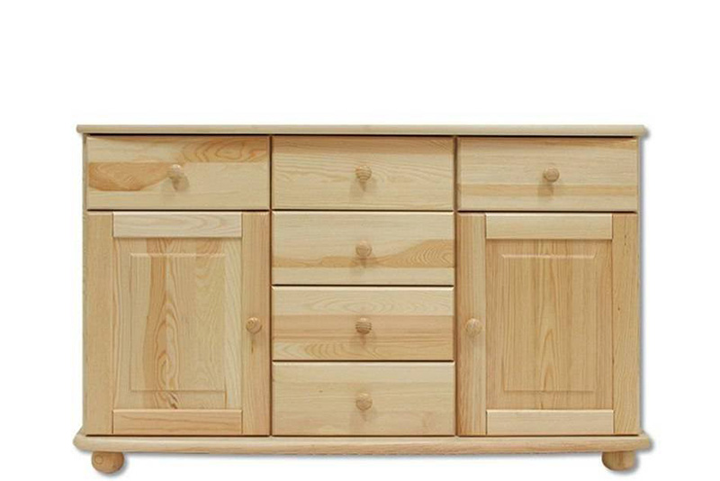 Drevená kombinovaná komoda s 5 zásuvkami a 2 dverami je vyrobená z masívnej prírodnej borovice a je povrchovo upravená lakovaním. Zásuvky sú drevené na kolieskových výsuvoch s 2/3 otvorením. Pri dverách použité kvalitné kovové pánty s uhlom otvorenia 110 °. Na výrobu je použitý prvotriedny materiál a na povrchovú úpravu je ekologický lak. Tieto komody sa vyznačujú starostlivým spracovaním a dlhou životnosťou. V základnej cene je komoda z borovicového dreva v prírodnej farbe. Morenie podľa vzorkovníka je za príplatok 10% z ceny.