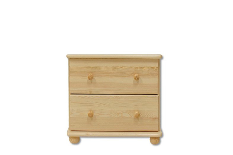 Drevená zásuvková komoda s 2 zásuvkami je vyrobená z masívnej prírodnej borovice a je povrchovo upravená lakovaním. Zásuvky sú drevené na kolieskových výsuvoch s 2/3 otvorením. Na výrobu je použitý prvotriedny materiál a na povrchovú úpravu je ekologický lak. Tieto komody sa vyznačujú starostlivým spracovaním a dlhou životnosťou. V základnej cene je komoda z borovicového dreva v prírodnej farbe. Morenie podľa vzorkovníka je za príplatok 10% z ceny.