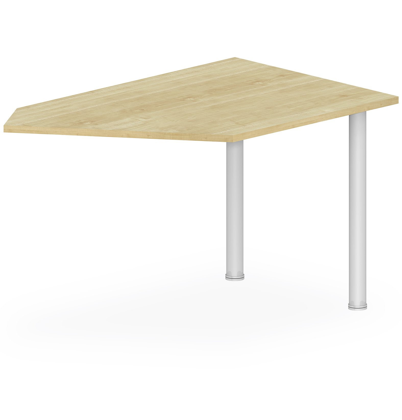 Stôl doplnkový Kovové valcové nohy. Stolová doska hrúbky 25 mm, hrana ABS 2 mm. Stolové dosky vrátane spojovacích prvkov. Štandardné prevedenie kovových častí podnože strieborná RAL 9006. Bez príplatku možnosť prevedenia biela RAL 9003 alebo čierna RAL 9005.