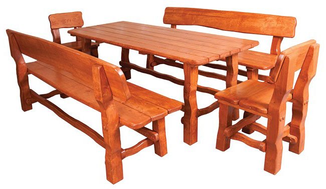 popis Doprajte si luxusné záhradné posedenie z masívneho dreva. Záhradný set je vyrobený z jelšového dreva. Spracovanie je veľmi kvalitné. Záhradný set sa skladá zo záhradného stola, dvoch záhradných lavíc a dvoch záhradných stoličiek. Pohodlne sa za neho usadí minimálne šesť osôb. Povrch je ošetrený ekologickým, zdravotne nezávadným lakom, ktorý chráni nábytok pred nepriaznivými vplyvmi ako je slnko, dážď a vietor. Farebné prevedenie ponúkame v odtieňoch: teak (na obrázku), Rustikal, Orech, Brunat alebo prírodná Jelša - bezfarebný lak. Každý kus nábytku je možné zakúpiť aj samostatne.
