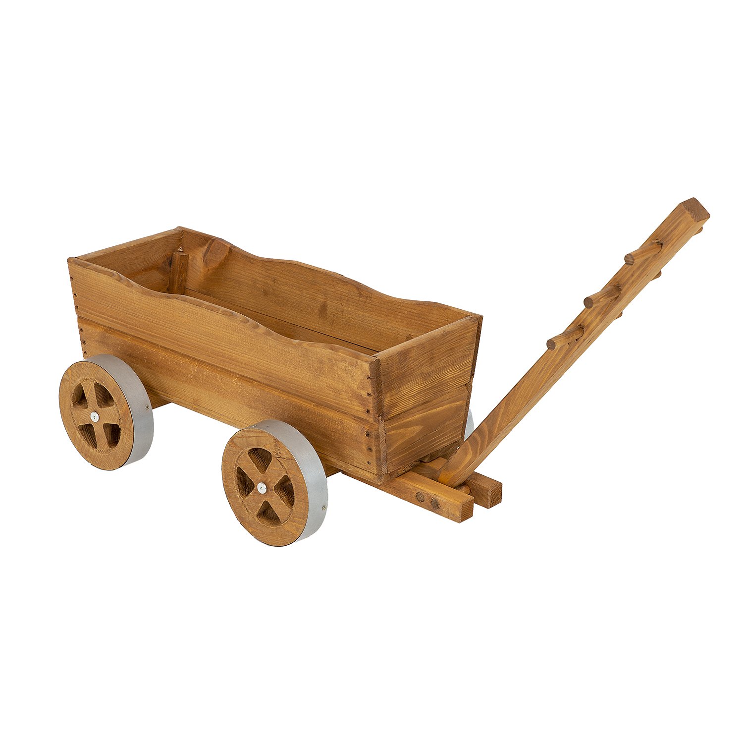 Drevený záhradný vozík / kvetináč MO276 je veľmi originálnym a efektívnym riešením pre záhradných nadšencov a tých, ktorí ocenia originálne a nevšedné záhradné doplnky. Ideálne na pestovanie vašich rastlín, ale aj na uloženie detských vonkajších pokladov. Vyrobené z kvalitného masívneho dreva, riadne chránené a odolné voči poveternostným vplyvom. Jedinečný tvar tohto vozíka / kvetináča priťahuje pozornosť a je veľmi zaujímavým prvkom v každej záhrade, na terase alebo balkóne. Rozmery: 85x51x33cm