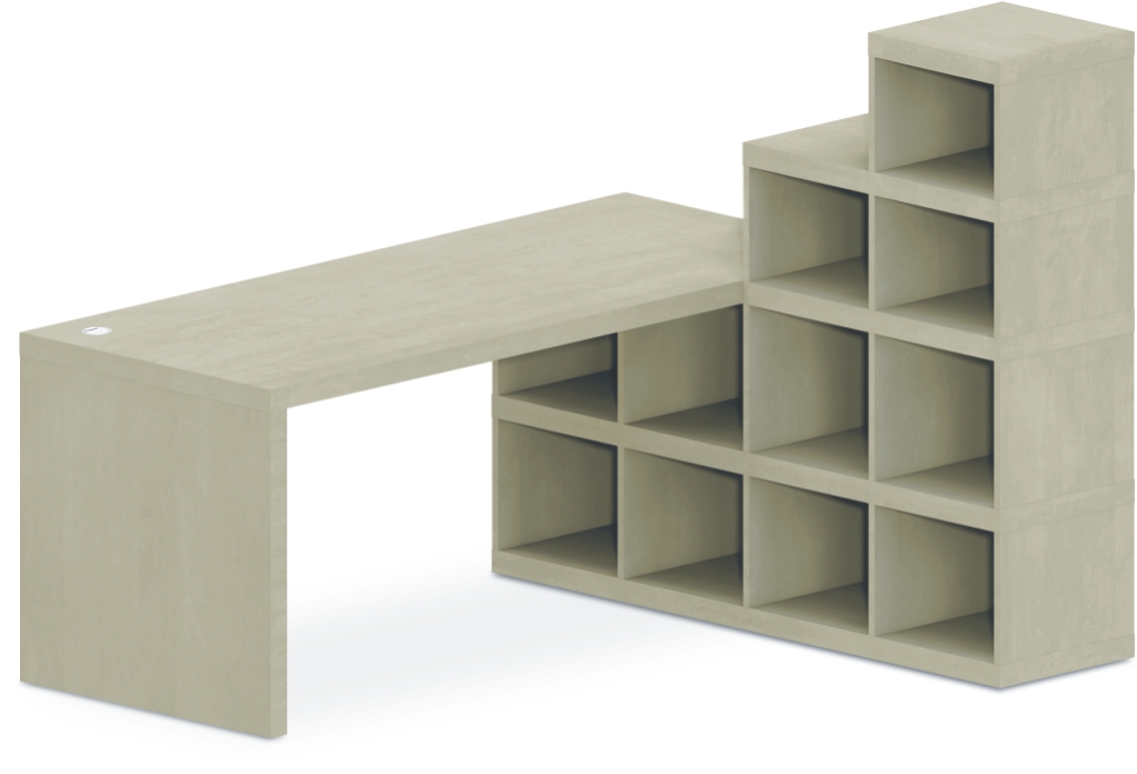 • Stôl s policovou skriňou. Ľavý. Pracovné stoly pre predškolákov i deti školou povinné vyrábame v materiáli laminotrieskovej dosky olepenej hranou ABS 2 mm. Dodávané v rozloženom stave, na montáž použité kovové minifixové spojovacie systémy 36 mm pre zaistenie maximálnej pevnosti a odolnosti.